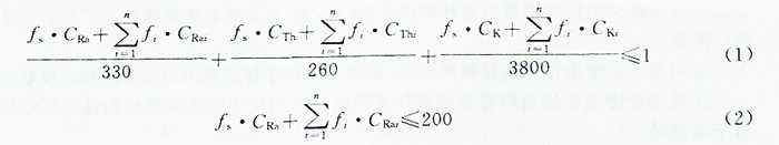 (2)建筑材料用工業廢渣的放射性物質限制標準為:其中226Ra、232Th、40K的放射性活度應同時滿足式(1)和式(2)。