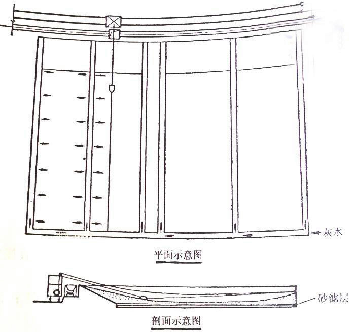 在沉灰池下鋪設沙濾層作為過濾介質,用真空泵通過沙濾層下部敷設的真空管道,使濾層中形成負壓,從而將粉煤灰顆粒間的附著水吸出,達到進一步降低粉煤灰含水率的目的。